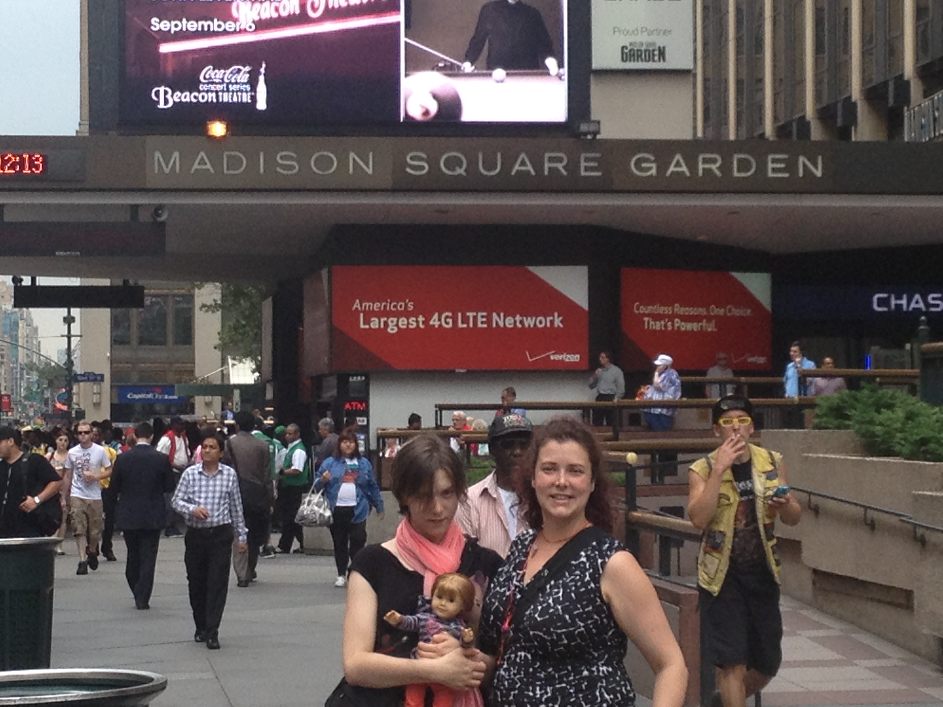 Emily, Madison (the doll) and me in front of Madison Square Garden…. where all of Justin’s fans stood one day before his concert!
