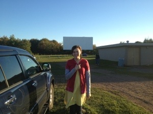 Yesterday, Jon told me the drive-in was open for one last weekend and the movies are Emily friendly.