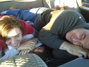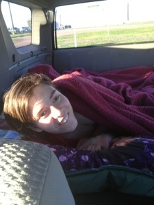 Back when I was a teenager, we had to use those big grey speakers… now, we just need to turn the radio on a specific channel. I like that, Pascale in the car, mosquitoes and black flies out of the car!!!