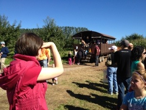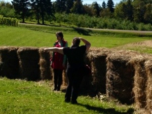 It took us a good half hour to make it through the gate. We stood in line and watch the kids play on the hay bales.