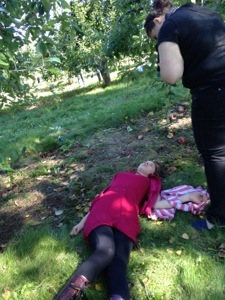 We even managed to convince Emily to lay down in the orchard. Now considering her lack of desire to even walk bare feet on grass… to have her accept to do this was quite an accomplishment.