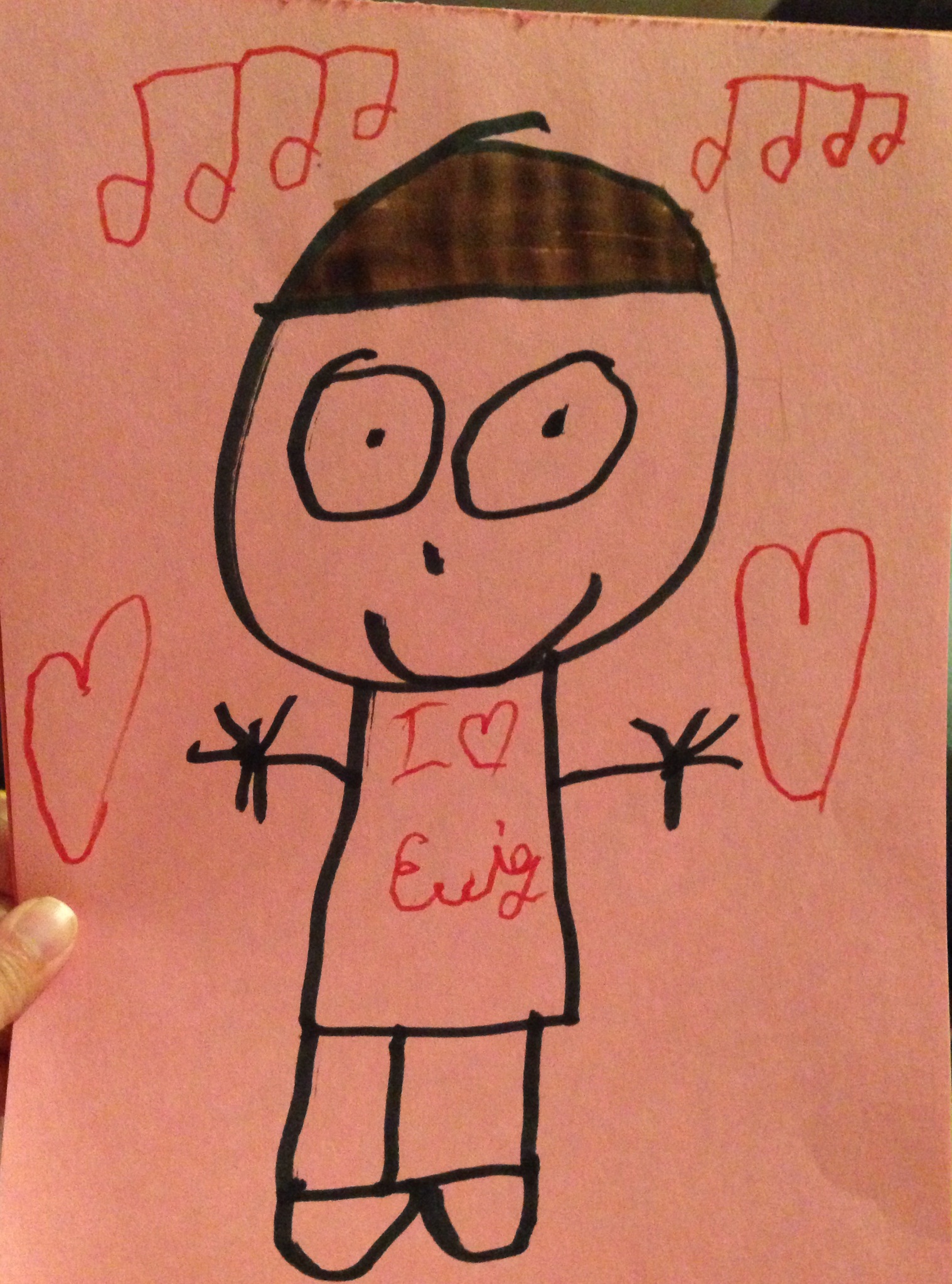 Here it is! My girl’s drawing. With music notes, lettering and even Emily’s signature in the middle of it all.