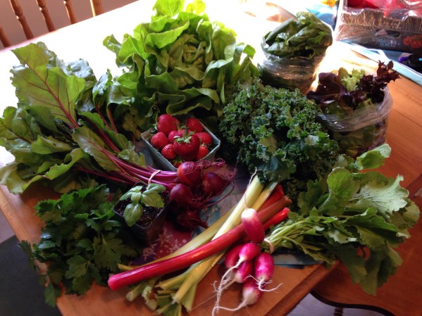 Tonight, we picked-up our first vegetable basket for the season. I am so excited, I love fresh produce but can’t stand our over-crowded Saturday market.  So, this weekly surprise basket is awesome.