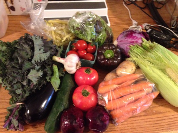 Look at those colors! Gardening season is fairly short here and for the second year, we are subscribing to a farmer’s basket. On Wednesday, I get my vegetables based on what they have picked-up. It’s my weekly surprise and I love it.