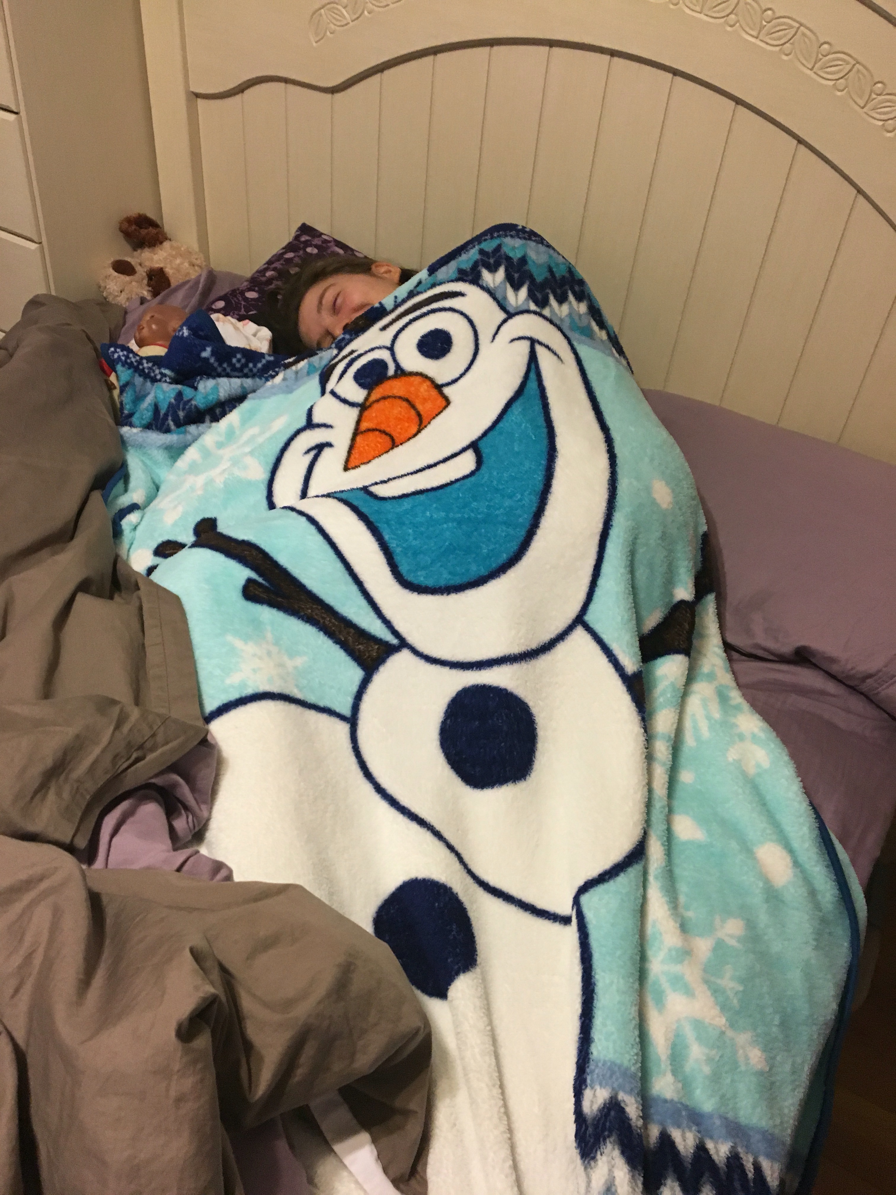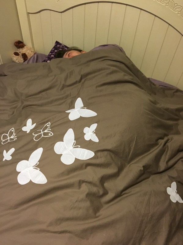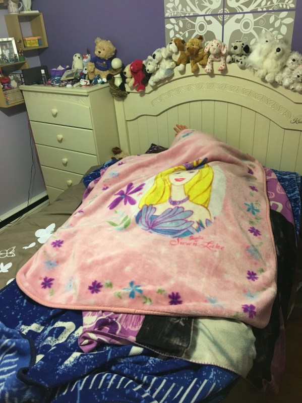 Yes, she’s under 7 blankets and by morning, she will still be in there!