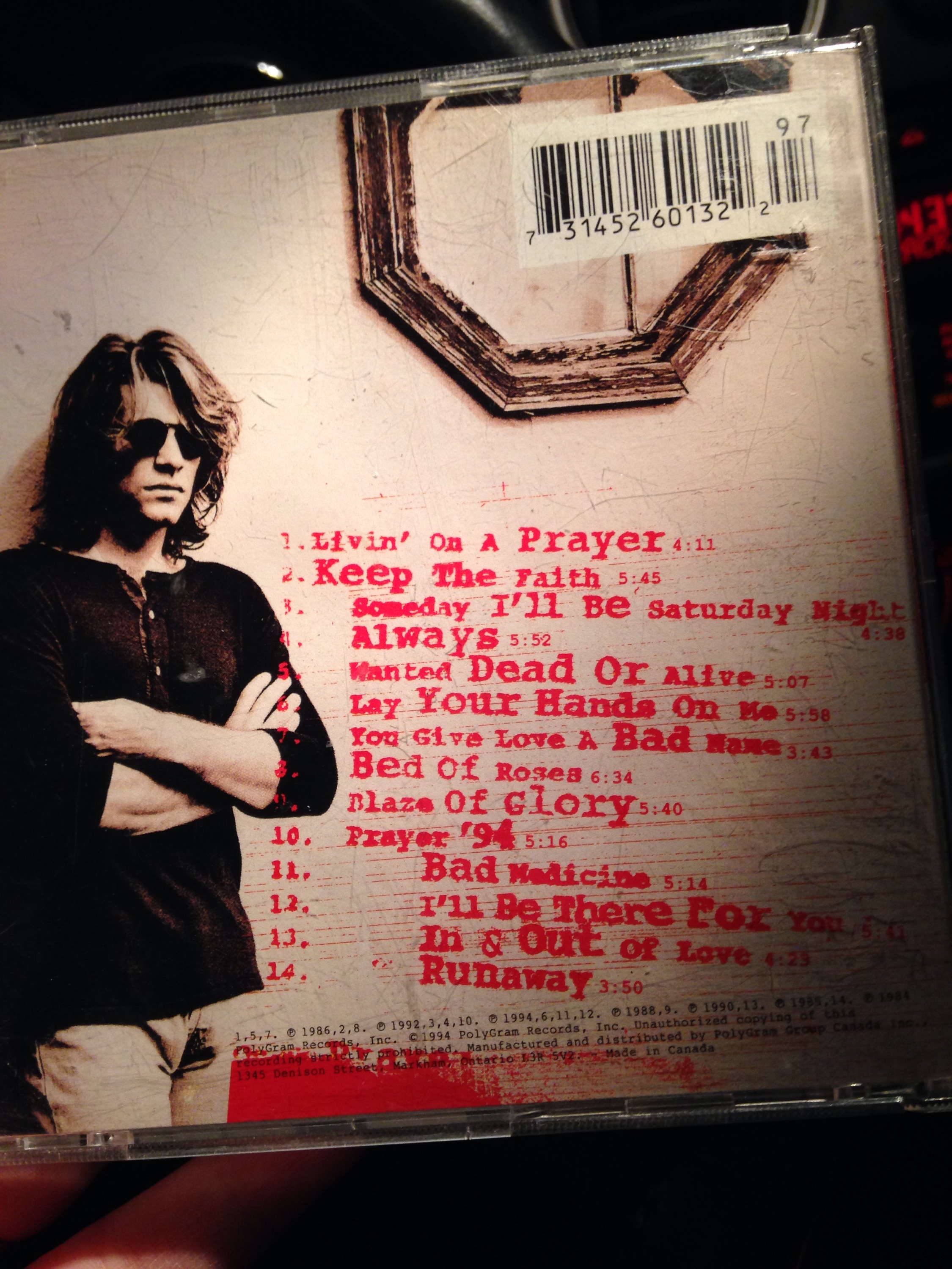 In the car, during our commute to school that morning Emily took her Justin Bieber CD out of the radio and replaced him with my Bon Jovi CD