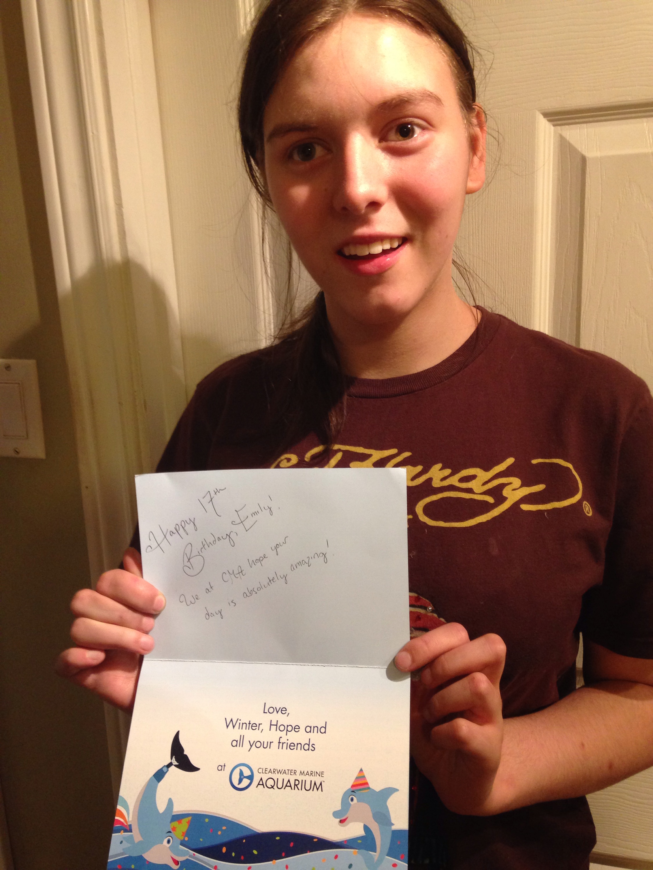 First, she got a birthday card from the Clearwater Marine Aquarium.