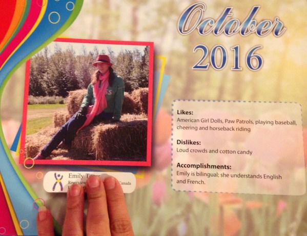 Earlier this year or late last year, Emily was asked to be part of a calendar, to raise awareness for Cri du Chat syndrome
