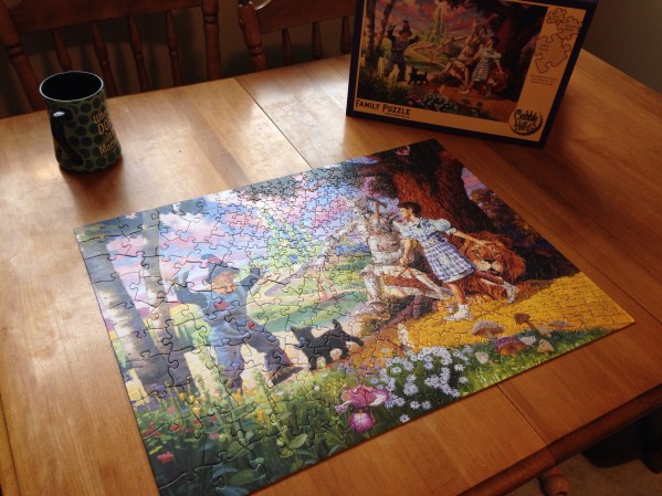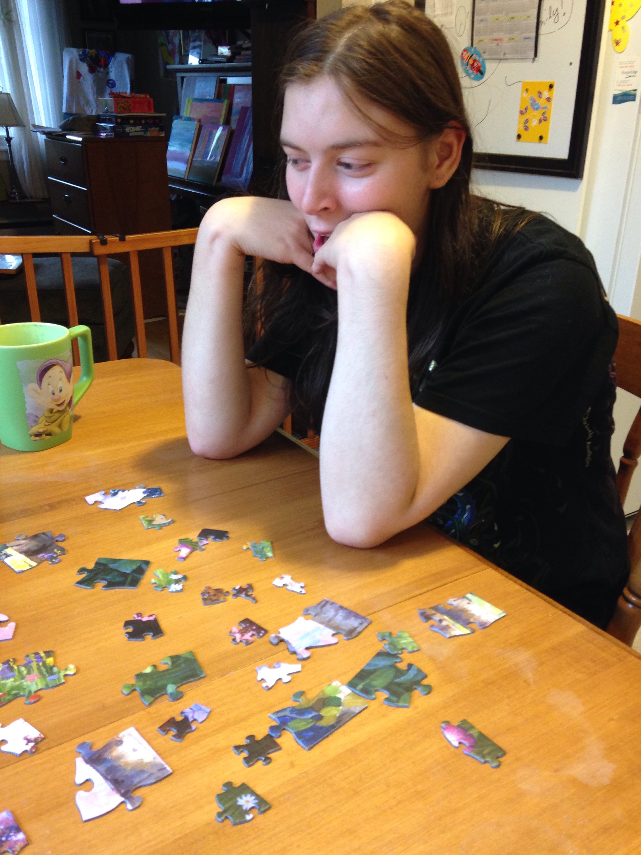 I love this so much and found a new family puzzle so we made another one. Look at the pieces…from larger (for Emily) to smaller for us. What an amazing puzzle.