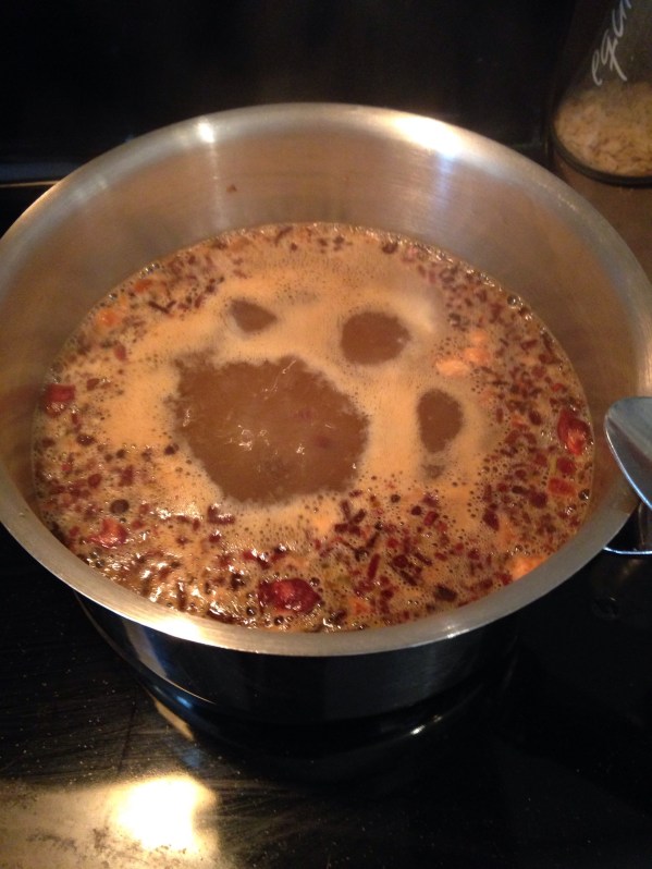 I found this recipe on Pinterest. I added some spices and couldn’t find Heath bits so I used chocolate and butterscotch chips.